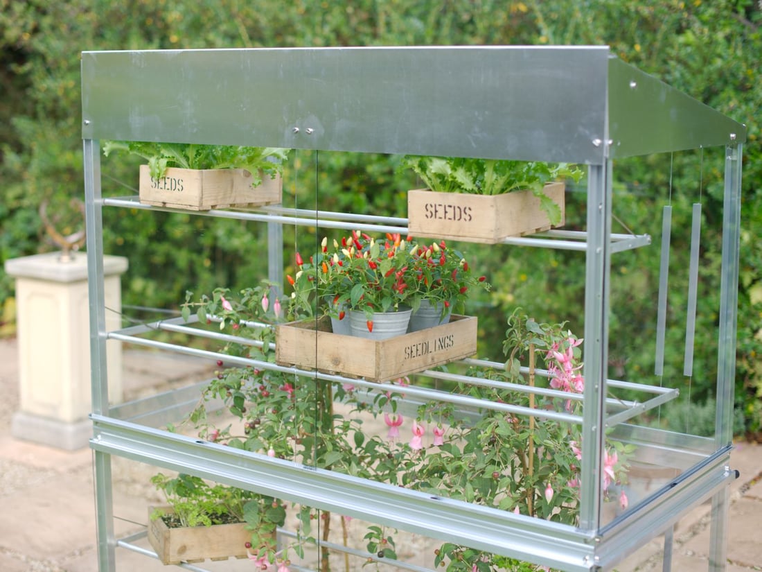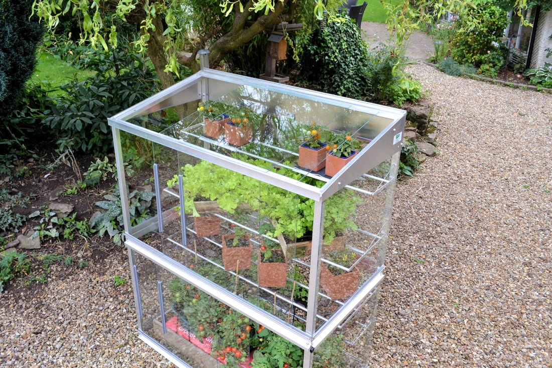 This Access Growhouse Freestanding Mini Growhouse is manufactured in the UK and comes with extra strong 3mm Toughened glass throughout for additional safety. Inside you will find 2 wide shelves and 2 narrow shelves. The front and roof panels slide so you can taylor your ventilation and you can even remove the roof panels on really hot days and all backed up by a 25 year Warranty.