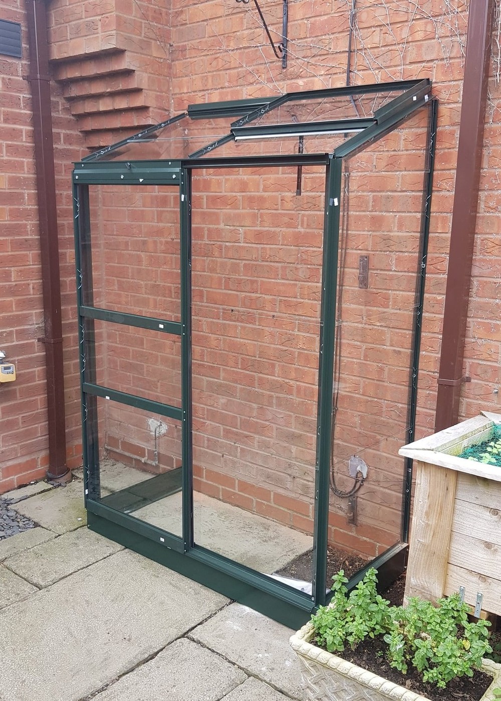 The Green Halls Wall Garden Lean-to is perfect for your patio space or against your shed or garage. The green powder coated finish looks super smart and gives a nice natural look to the greenhouse..