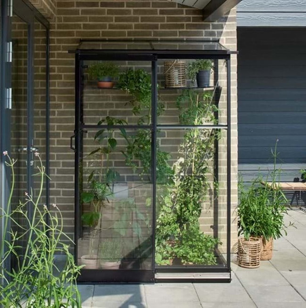 The All New 2x4 Halls Qube Lean to Greenhouse with toughened safety glass is the latest low ridge height lean to from Halls with unique design features like the Low threshold entrance and bar capping as standard.
