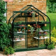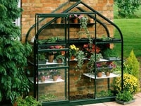 The Halls Supreme Wall Garden toughened safety glass is a long single sheet that goes from base to eaves and a long single pane for each roof section. Toughened glass is recommended for gardens where children or pets are around as it won`t break into dangerous shards like standard greenhouse glass but into small pebbles like a car windscreen. Toughened safety glass is also far better if you live in a windy spot as it`s heavy meaning it won`t blow out in high winds and makes your greenhouse generally more stable as a result.
