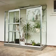 This Halls Wall Garden has a single opening roof vent for ventilation and a smooth single sliding door. Toughened glass is by far the best glazing for the UK climate as it`s Short panes offer the best rigidity and wind resistance.