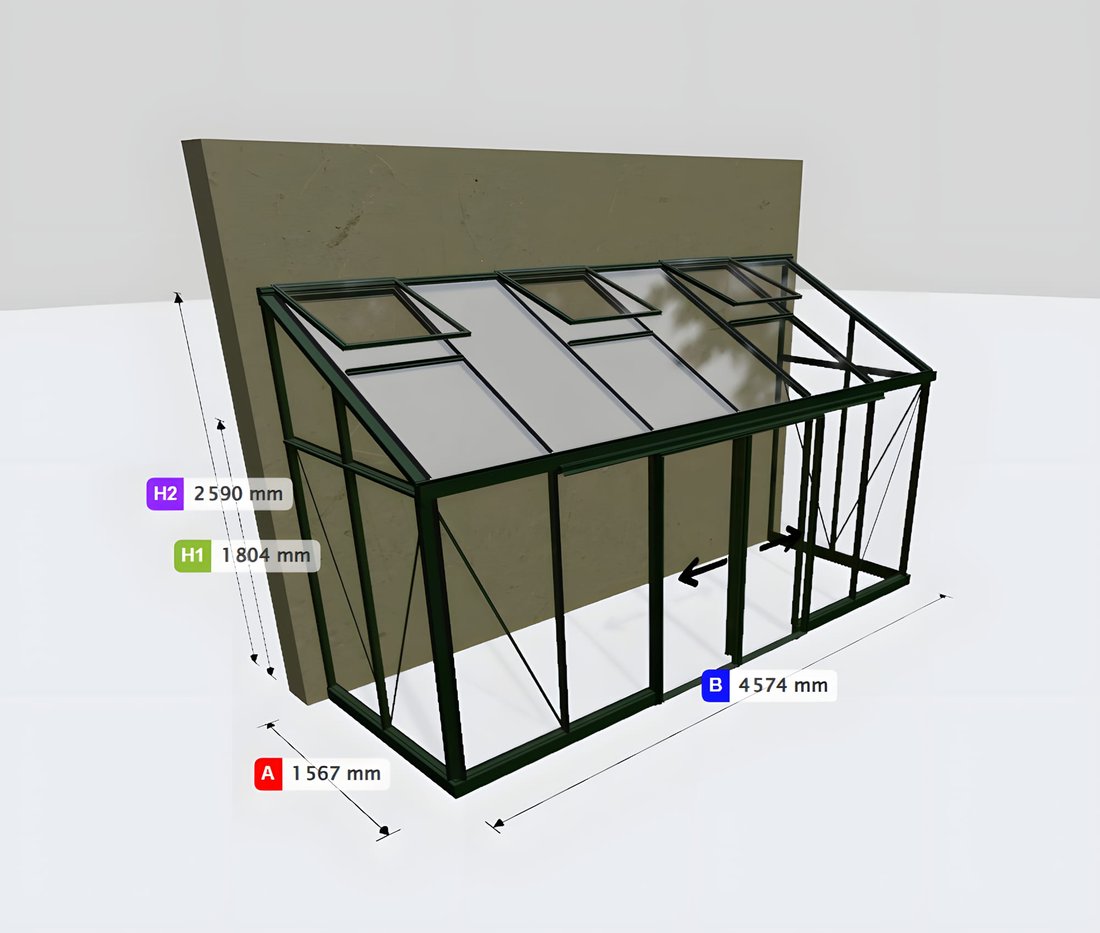 • 156cm (5ft 1") wide Lean to Greenhouse