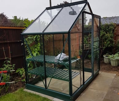 The green 6x4 Halls Popular is just the right size for growing some fresh produce on the patio.