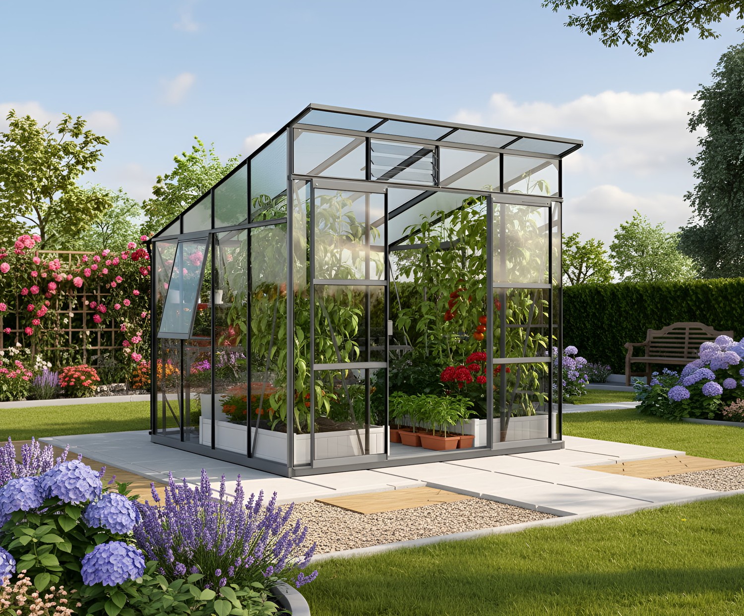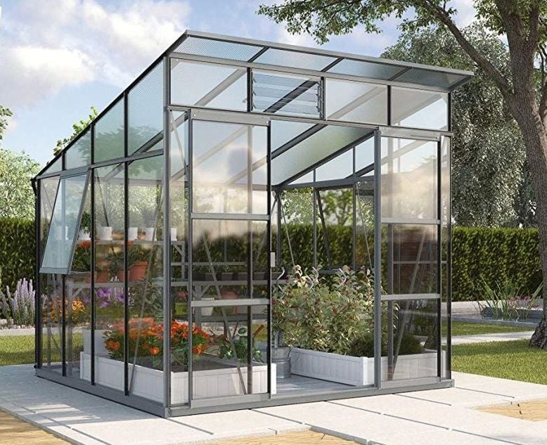 Folds out from the frame of your greenhouse when you need it with by 2 folding legs.