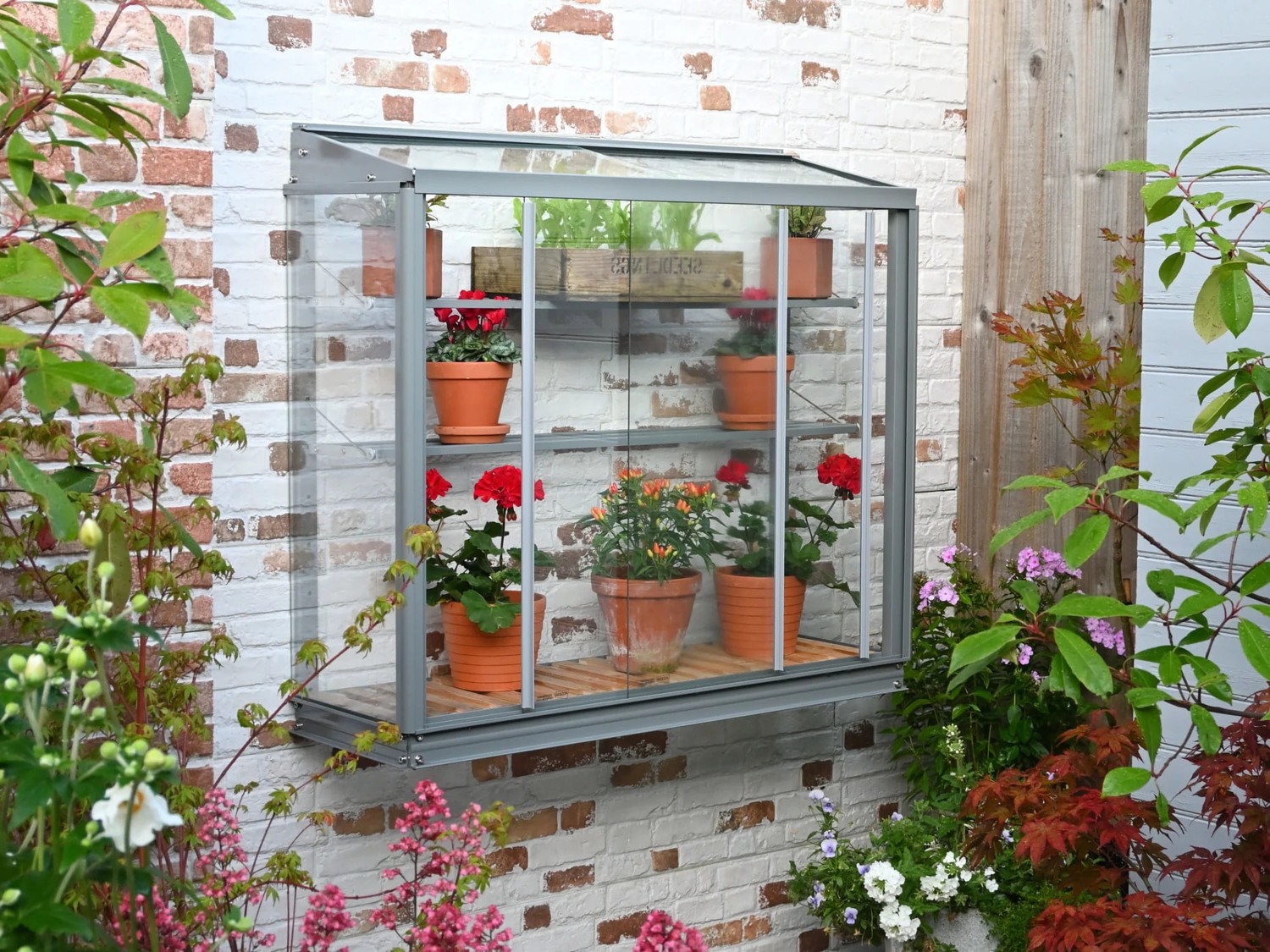 The Westminster Wall Mounted Growhouse has an ultra-narrow design, sliding doors, and adjustable seed tray shelves make it an ideal choice for small gardens or narrow spaces, providing easy access and efficient ventilation without occupying ground space.