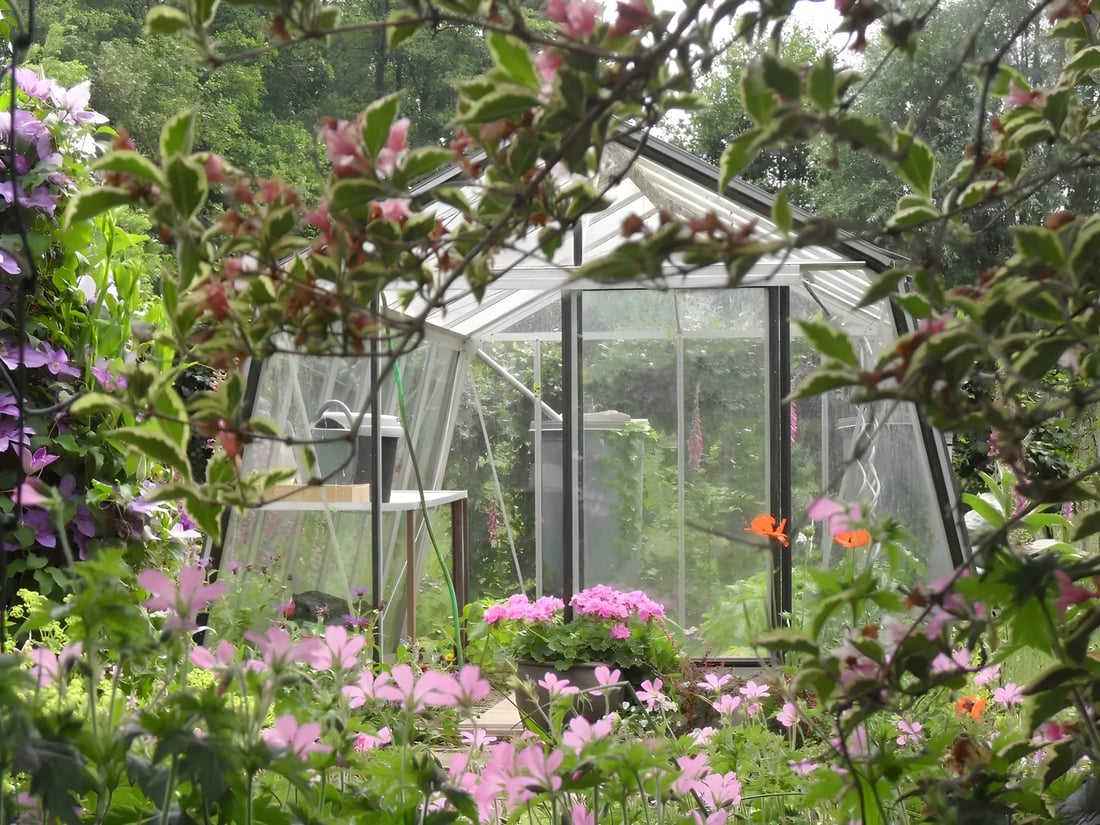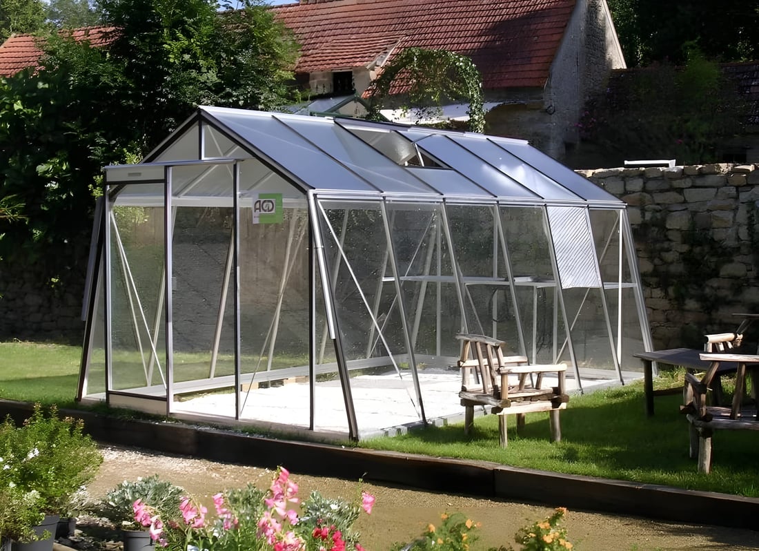 Built for both practicality and elegance, this greenhouse features 4mm hammered safety glass on the roof for diffused light distribution, reducing harsh direct sunlight exposure, and 4mm clear float safety glass on the side panels for visibility. The sloped walls maximize headroom, providing a spacious feel and better light penetration. The single opening roof vent ensures proper airflow, creating an ideal environment for plant growth.