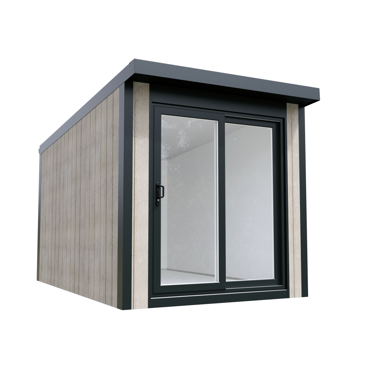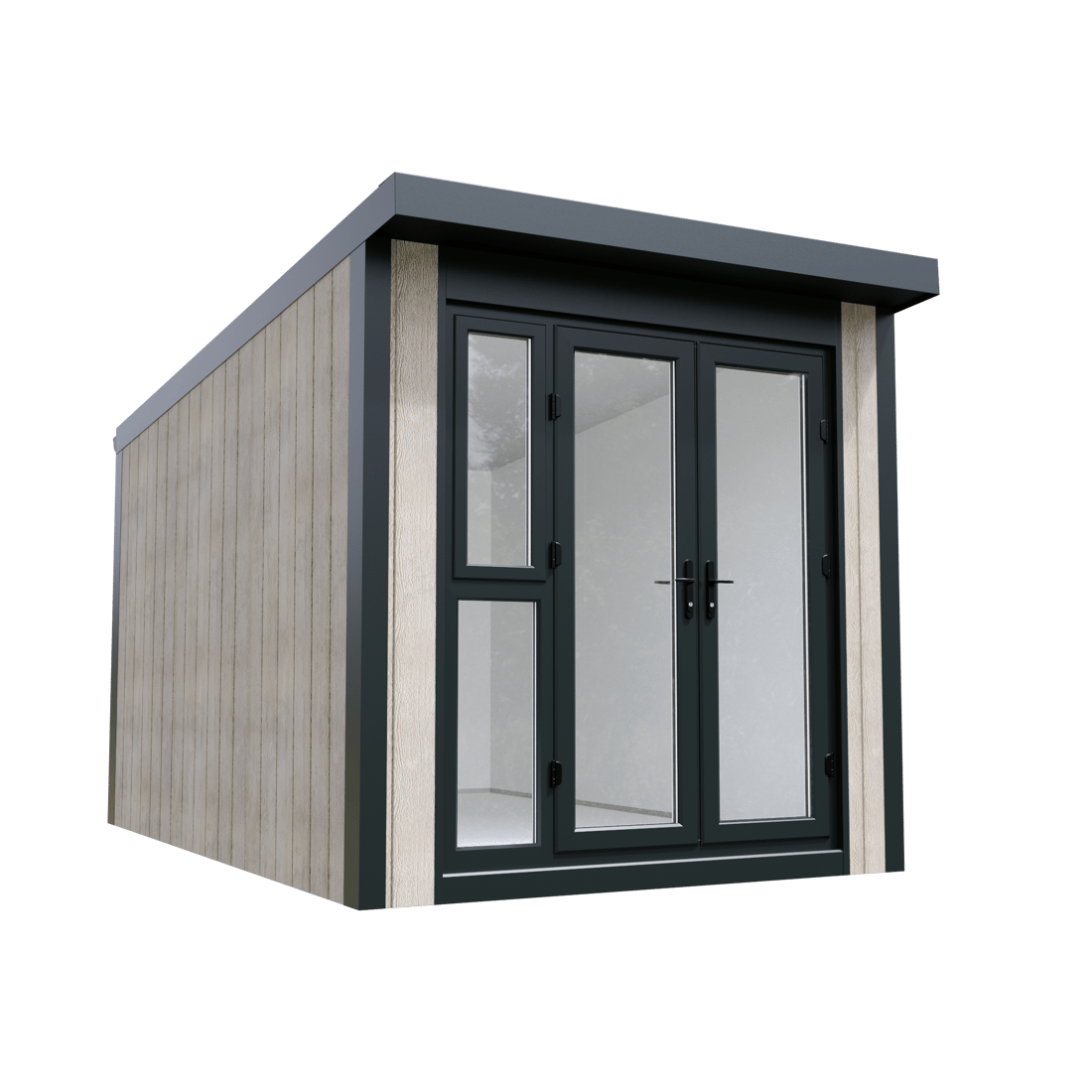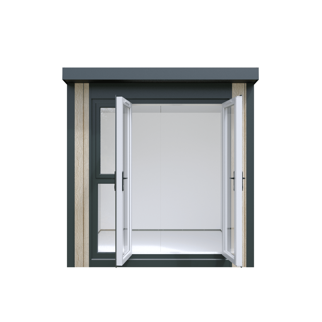 The 8x12 Calmpod Insulated Garden Room comes with a choice of premium grade Locking uPVC French Doors or Sliding Doors as standard. Optional Painted finishes and Laminate Floor Kits are also available.