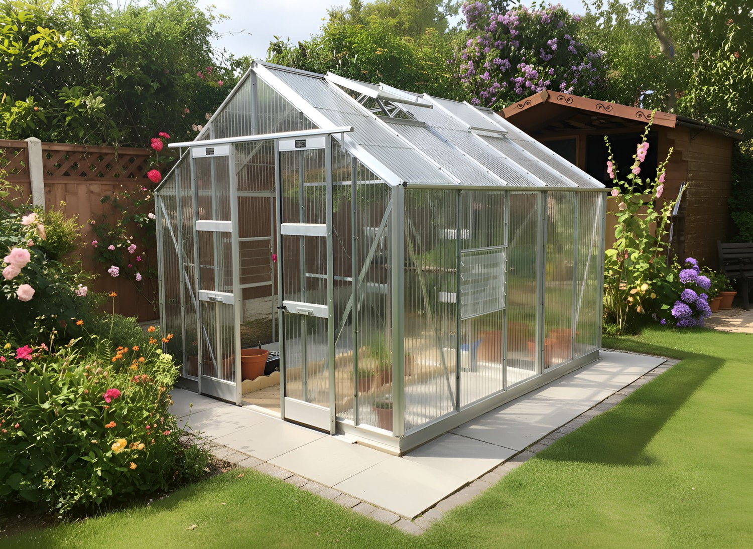 Add an additional set of plain Aluminium Finished Doors to the rear of your greenhouse.
