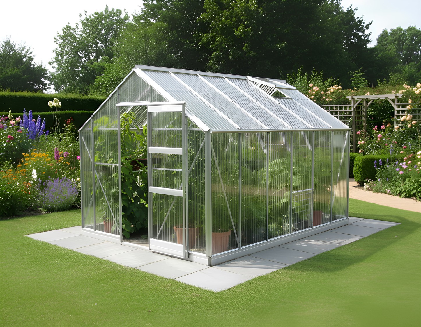 Add an additional set of plain Aluminium Finished Doors to the rear of your greenhouse.