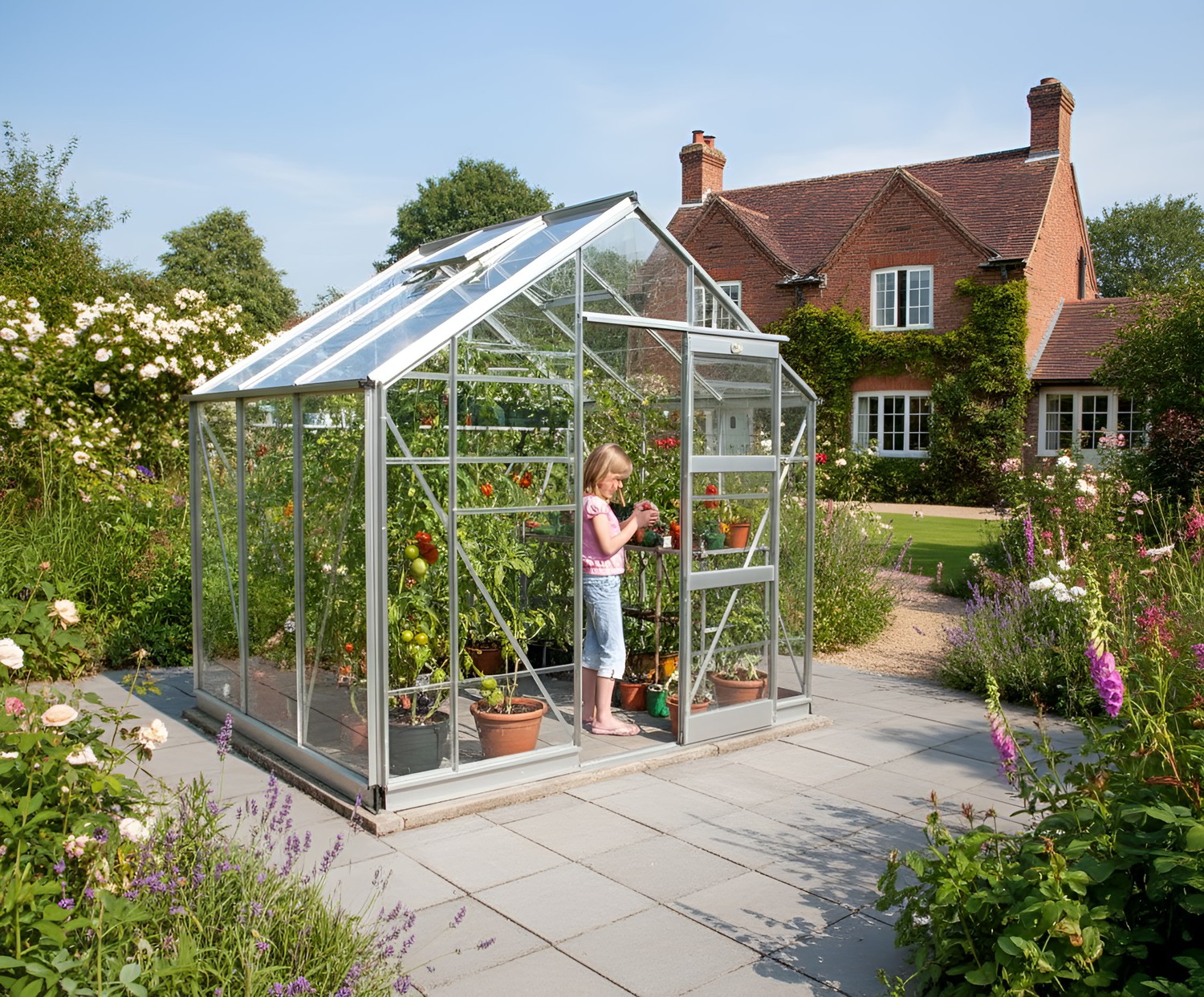 Add an additional set of plain Aluminium Finished Doors to the rear of your greenhouse.