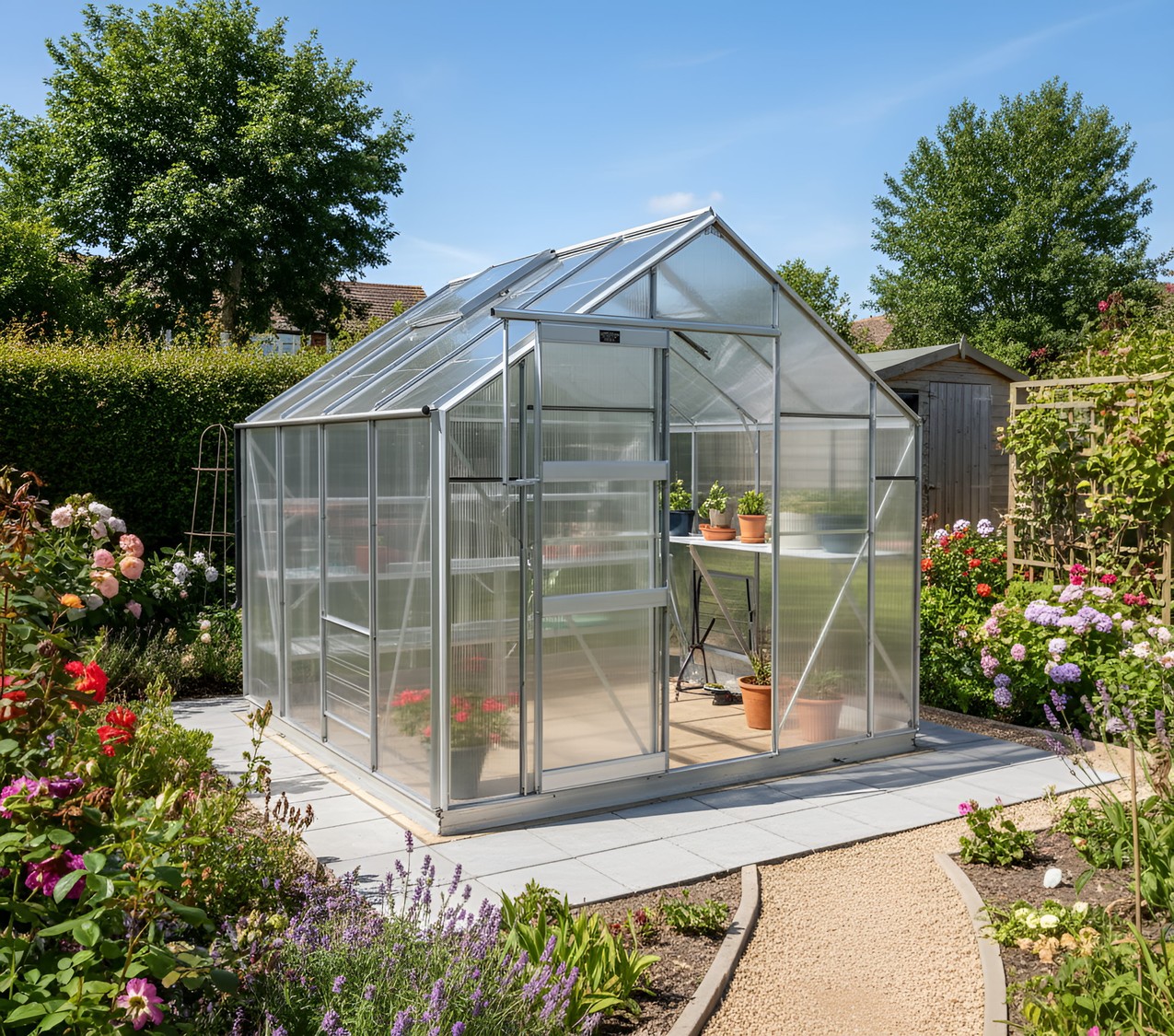 Add an additional set of plain Aluminium Finished Doors to the rear of your greenhouse.