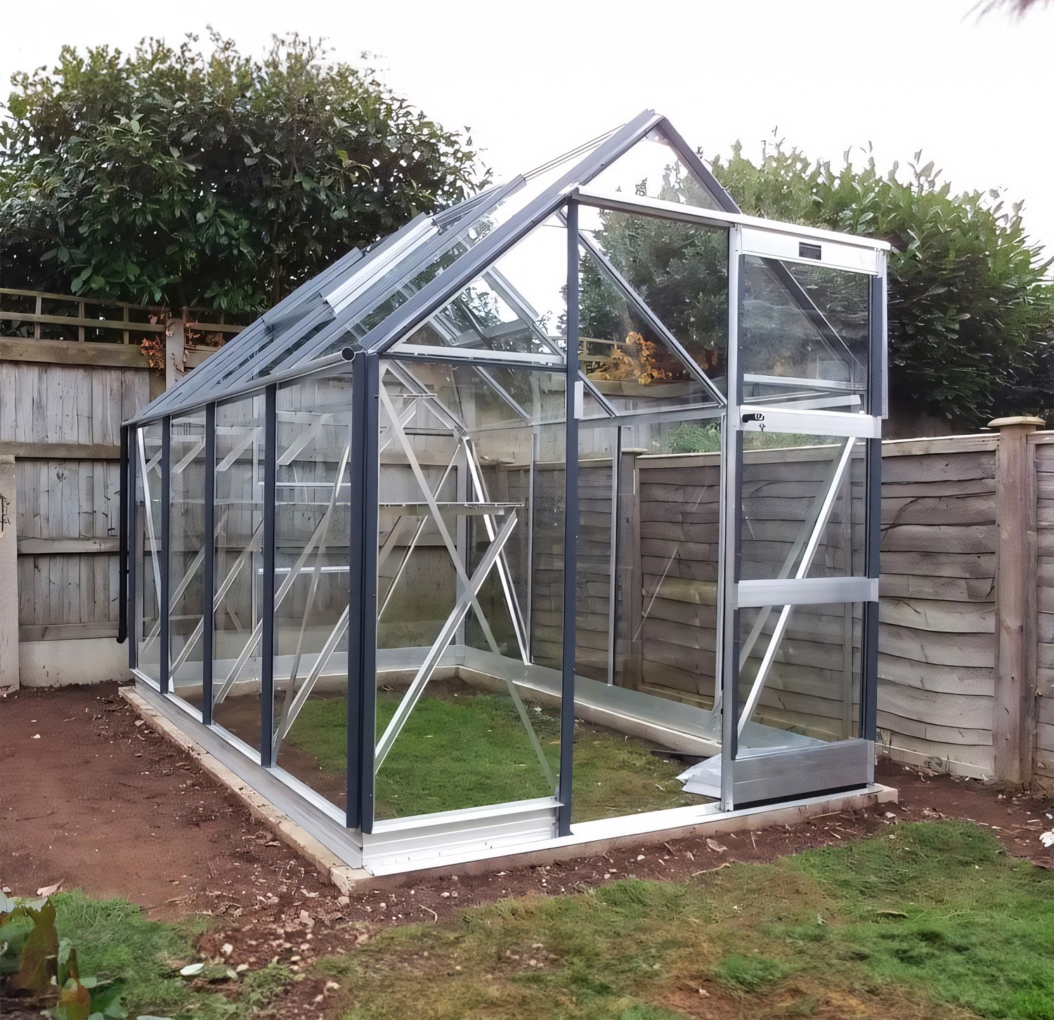 Add an additional plain Aluminium Finished Door to the rear of your greenhouse.