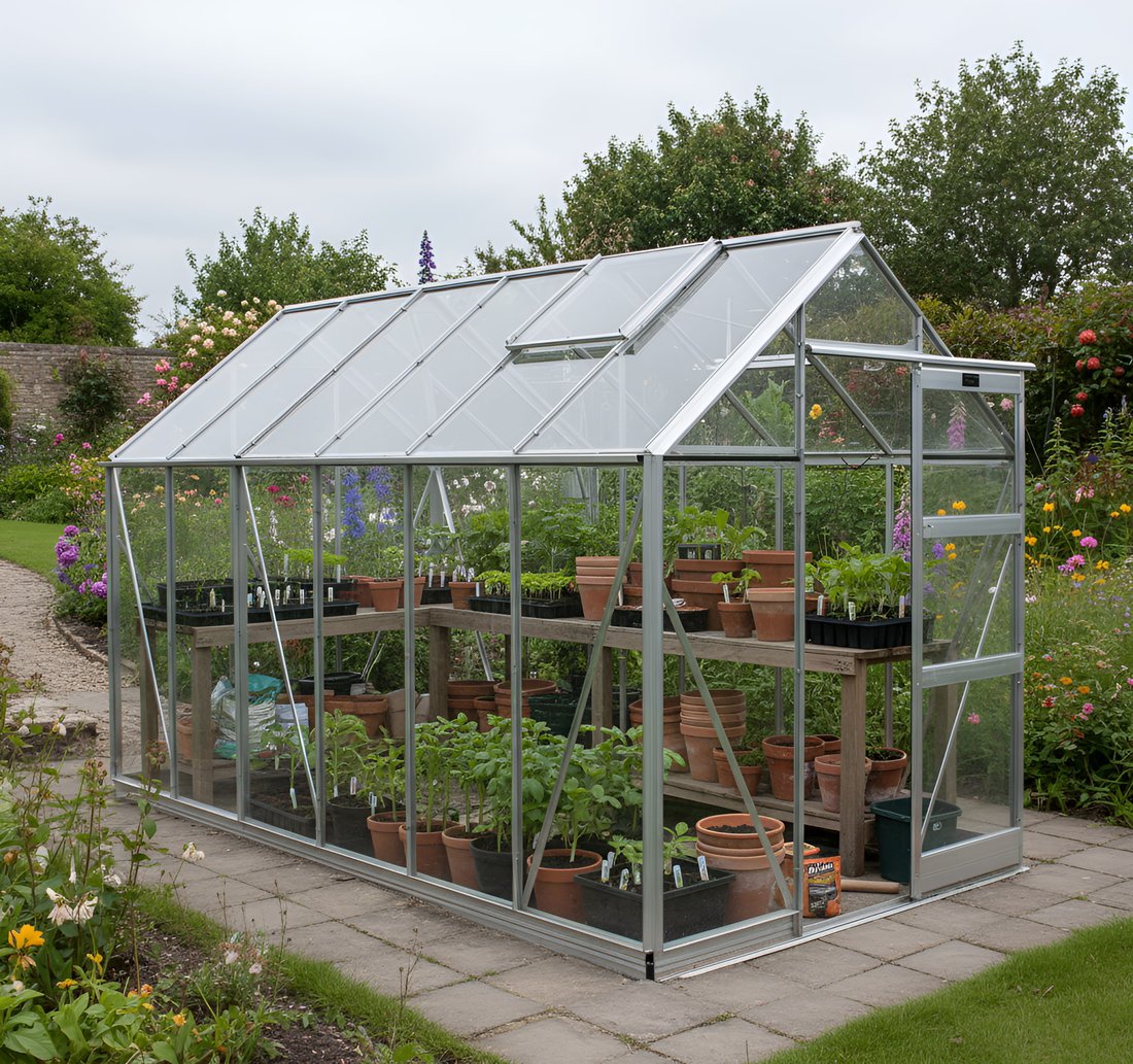 Add an additional plain Aluminium Finished Door to the rear of your greenhouse.
