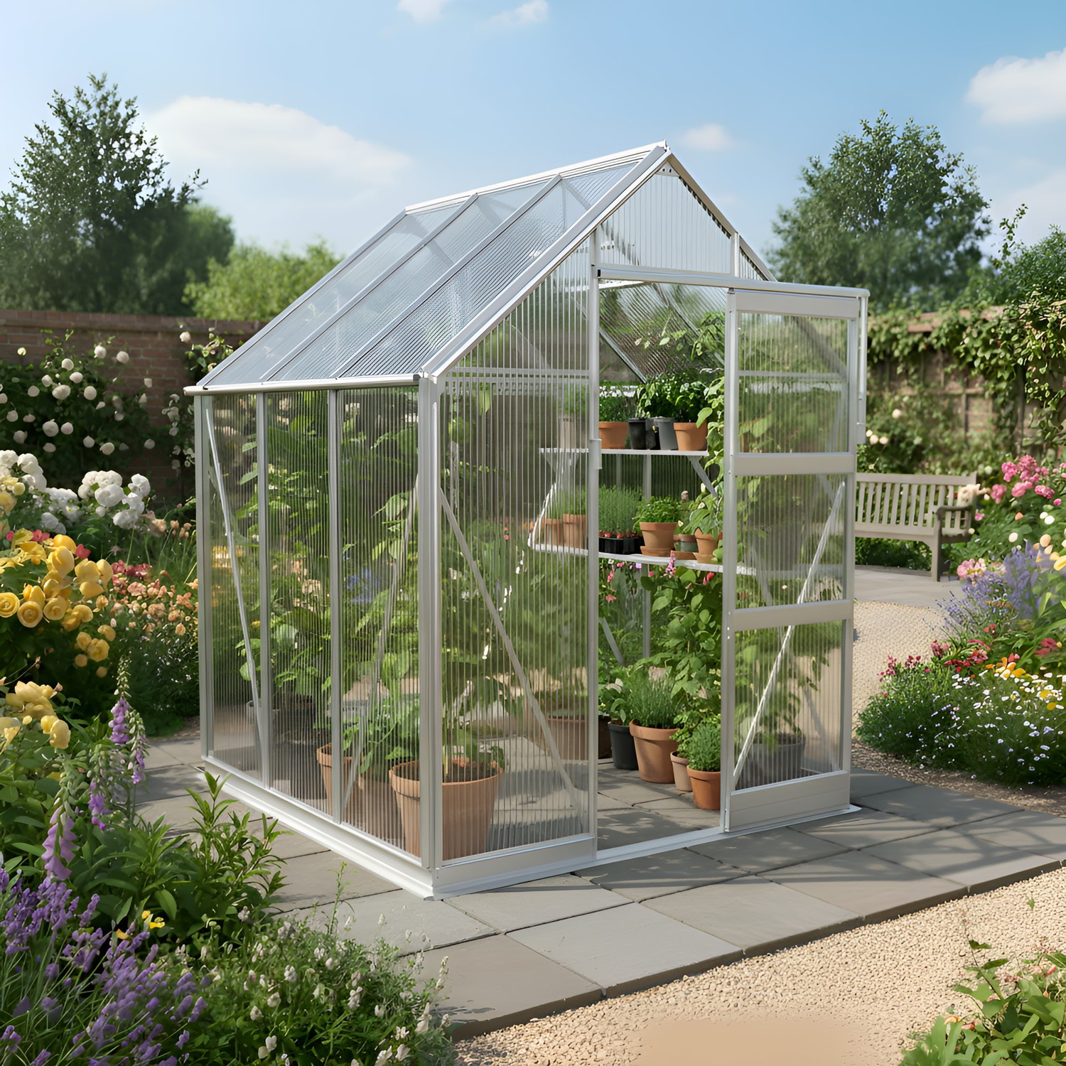 Add an additional plain Aluminium Finished Door to the rear of your greenhouse.