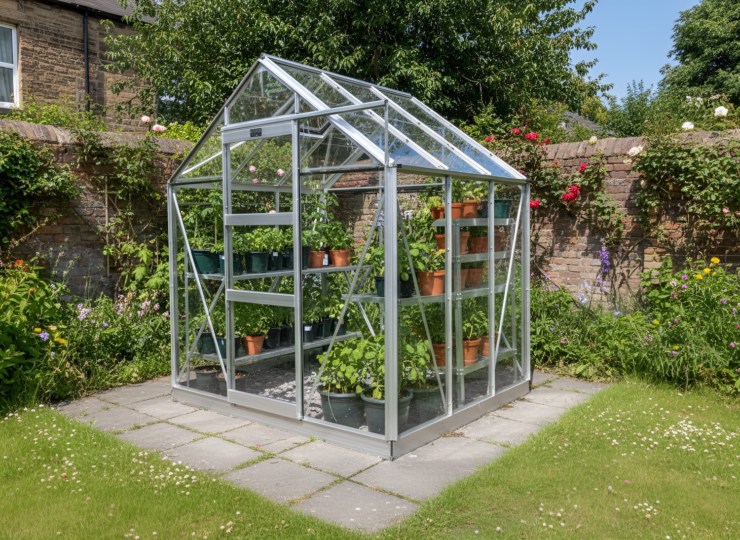 Add an additional plain Aluminium Finished Door to the rear of your greenhouse.