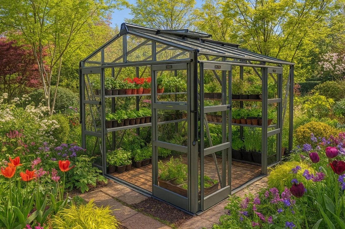 Add an additional set of Powder Coated Doors to your greenhouse.