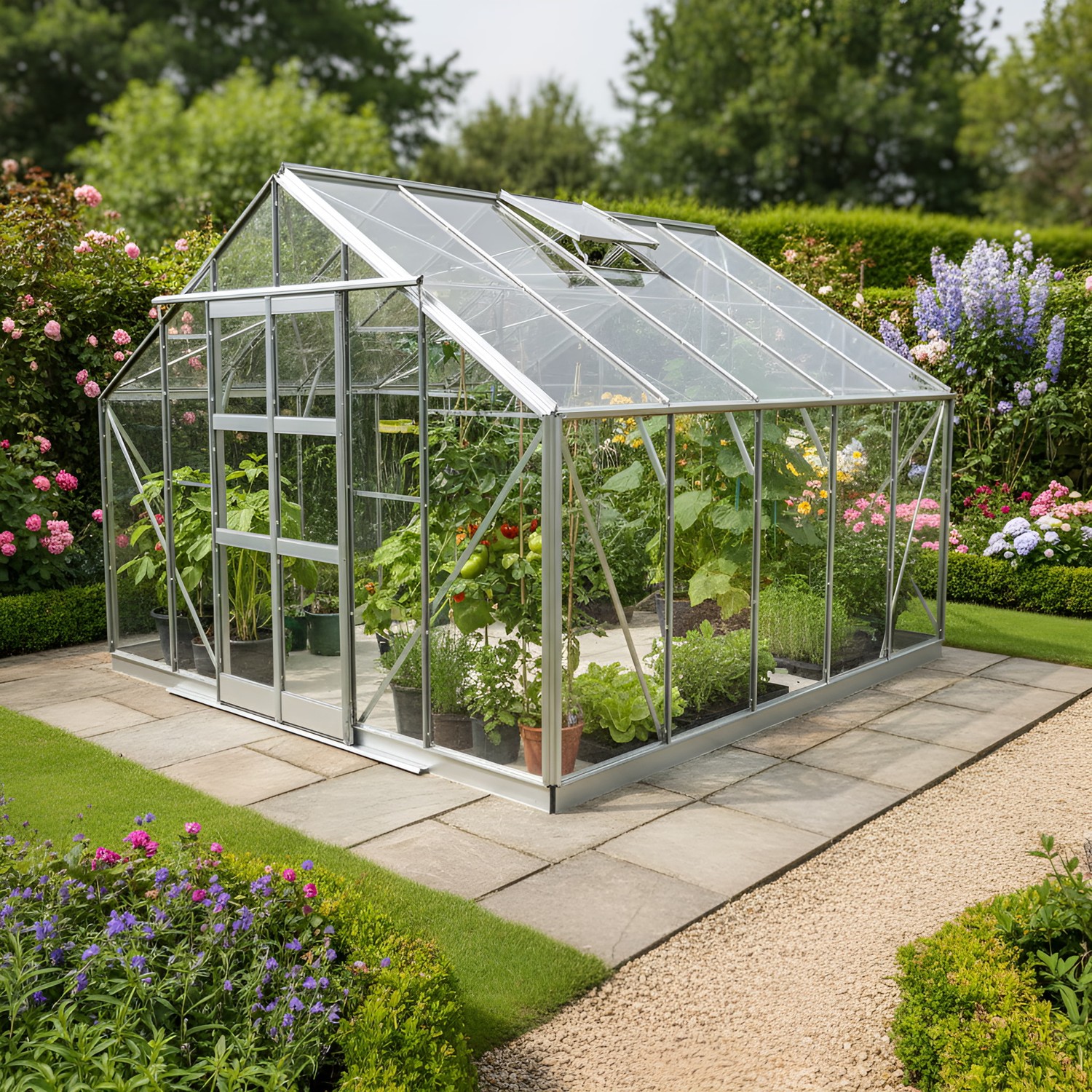 Add an additional set of Plain Aluminium Doors to the rear of your greenhouse.