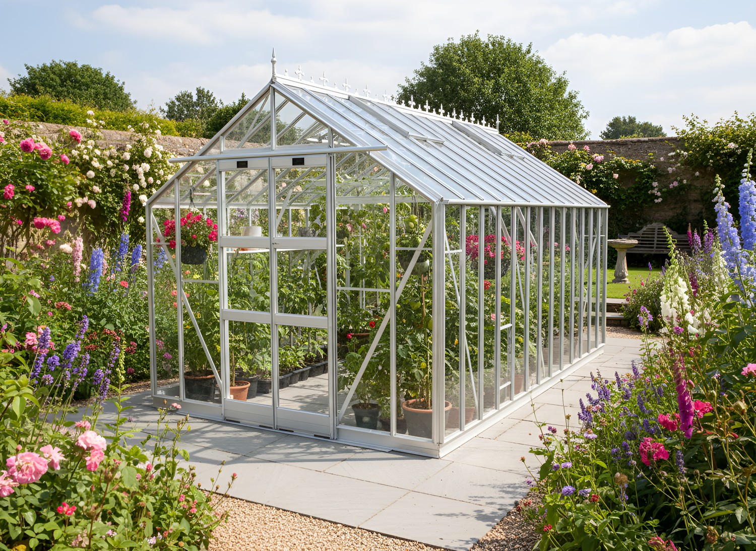Add an additional set of Plain Aluminium Doors to the rear of your greenhouse.