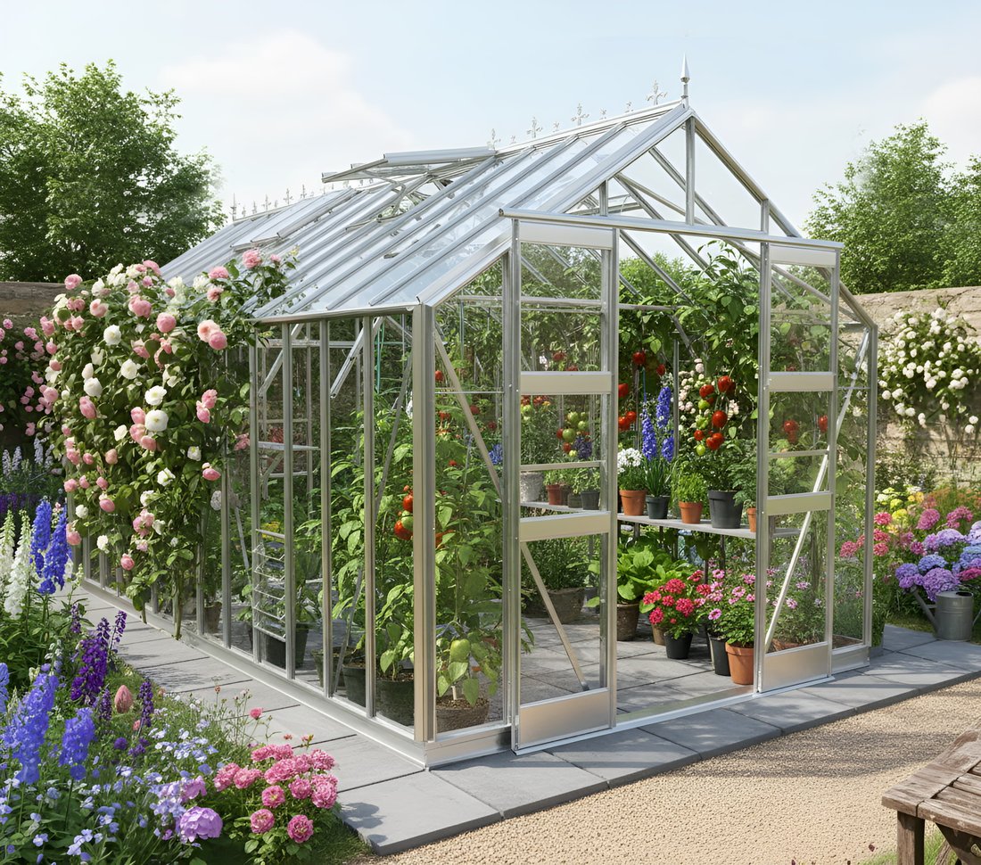 Add an additional set of Plain Aluminium Doors to the rear of your greenhouse.