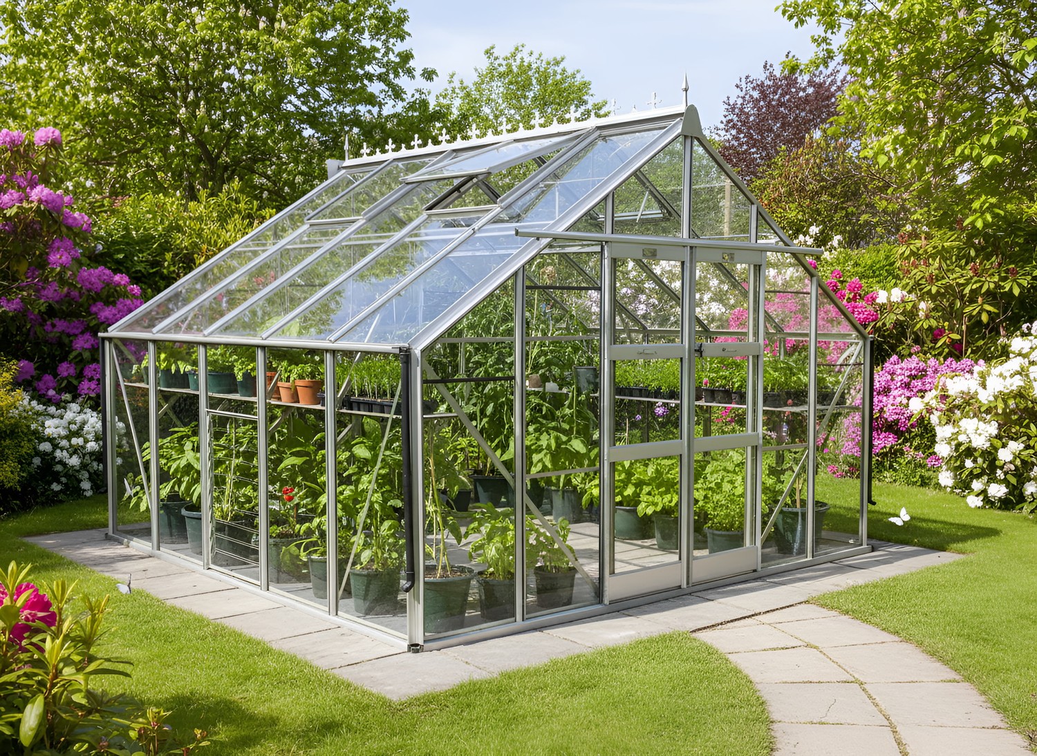 Add an additional set of Plain Aluminium Doors to the rear of your greenhouse.