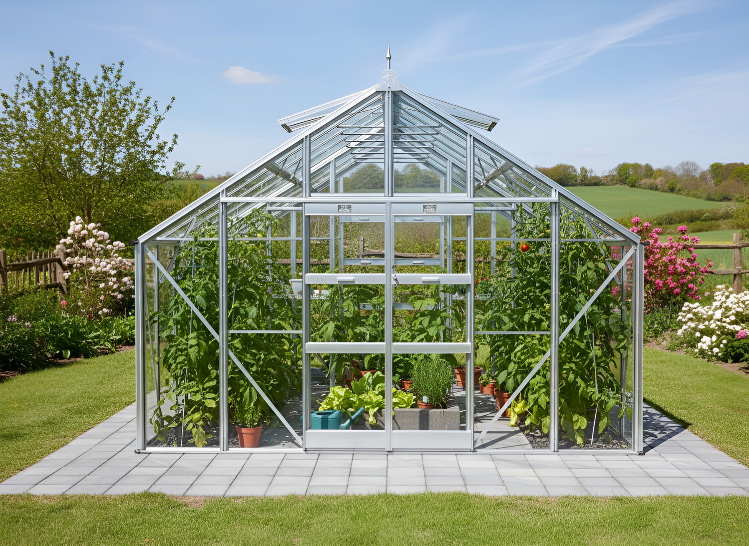 Add an additional set of Plain Aluminium Doors to the rear of your greenhouse.