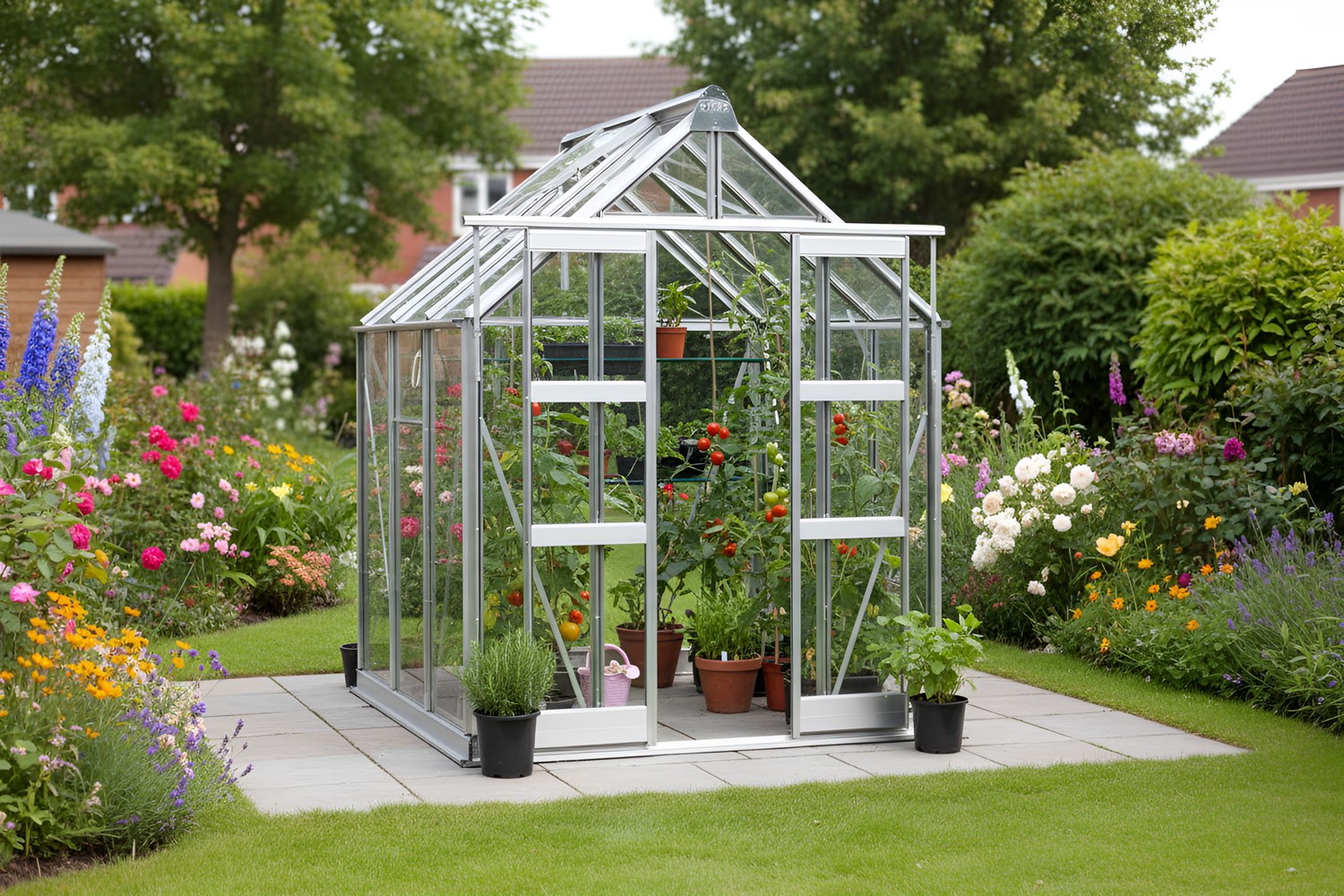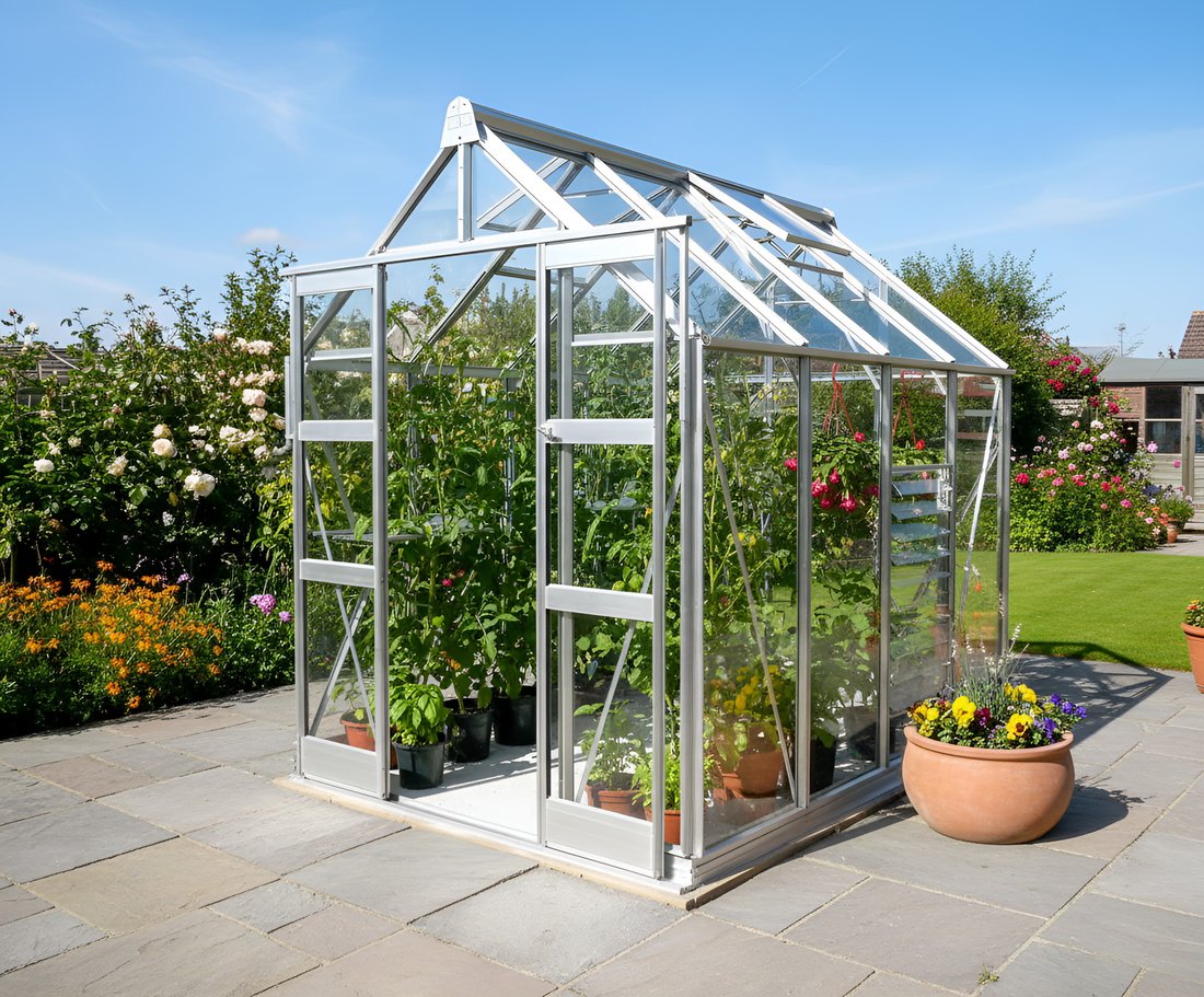 Add an additional set of Plain Aluminium Doors to the rear of your greenhouse.