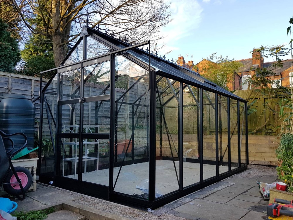 Please Note: Installation requires an optional base plinth (if available) on a flat, level surface like slabs, concrete, or decking that meets the minimum base size. The package includes the greenhouse, ventilation, and downpipes only; accessories and groundwork are excluded. Installation will be carried out 2-8 weeks after the delivery of your Greenhouse.