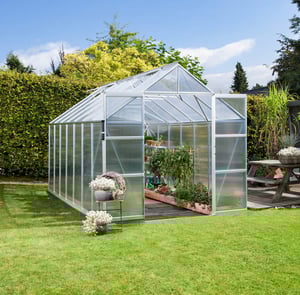 Add an additional set of Plain Aluminium Doors to the rear of your greenhouse.
