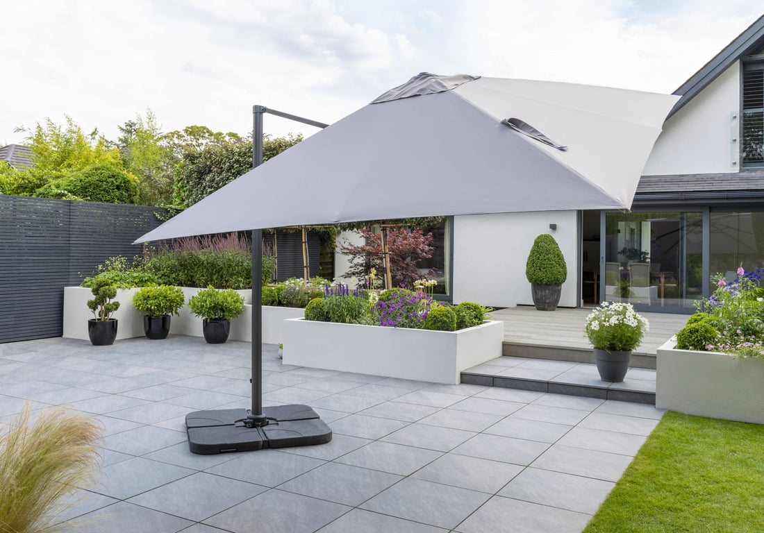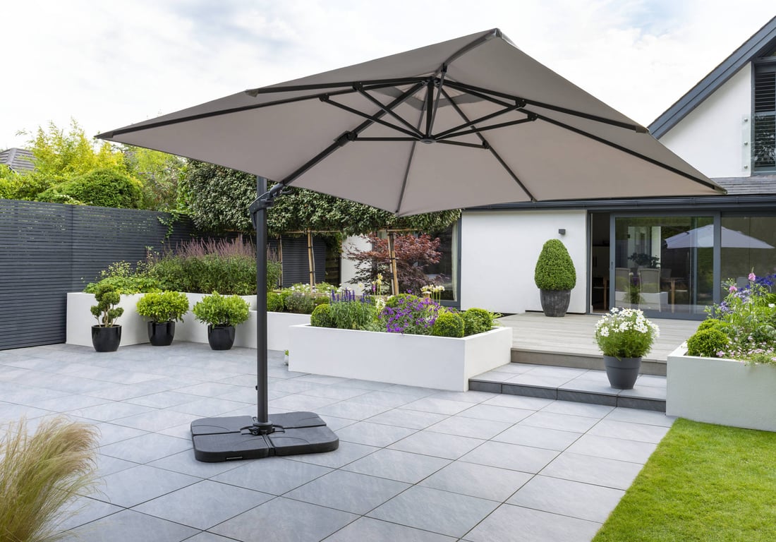 The Garden Must Haves Royce Executive 3m Cantilever Parasol in Soft Grey is made from luxury aluminium and has a heavy duty polyester canopy, making it both stylish and durable. It also features an easy tilt and full rotation system, so you can adjust the parasol to suit your needs.
