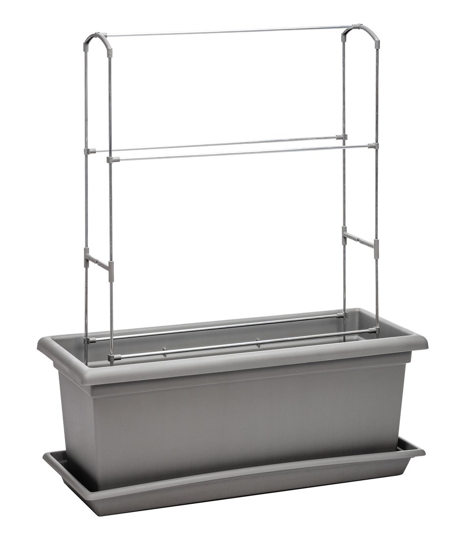 The 1000mm Magnus Self Watering Planter includes a twin-height aluminium trellis that securely mounts into the base to provide vertical support as your plants grow, thereby creating the desired 'living wall' effect. Start with the trellis at 60cm and extend it up to 117cm as your plants flourish. Additionally, a bag of Vermiculite is included in the kit to facilitate the upward wicking of water. The kit is designed for both indoor and outdoor use, making it a versatile addition to your garden.