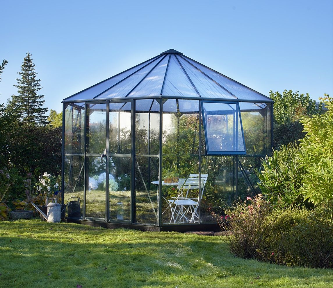 The Halls Hexagonal Atrium will give you more than enough growing space to bring on seedlings as well as grow salad, herbs and vegetables all year round. The great thing about a 12ft wide greenhouse is the working space inside that means a couple of you can be toiling away potting up or plants without bumping into each other. The extra width also means that you can use the greenhouse more like a conservatory.
