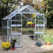 The UK manufactured Halls Cotswold Blockley Silver 8x12 Greenhouse with 6mm polycarbonate glazing comes as standard with glazing capping rather than wire clips to keep your glazing tight in the frame.