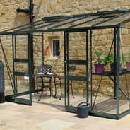 The UK Manufactured Halls Cotswold Broadway Green 6x12 Lean to Greenhouse with toughened safety glass is the latest low ridge height lean to from Eden with unique design features like the no threshold entrance and bar capping.