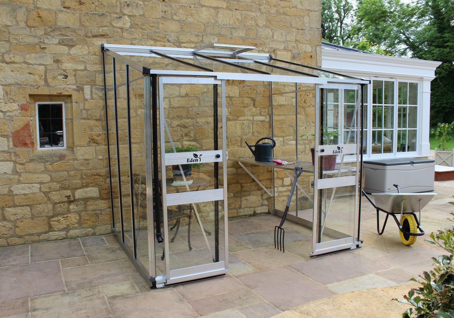 The UK Manufactured Halls Cotswold Broadway Silver 6x8 Lean to Greenhouse with toughened safety glass is the latest low ridge height lean to from Eden with unique design features like the no threshold entrance and bar capping.