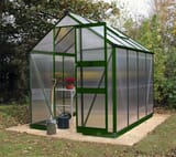 The UK manufactured green Halls Cotswold Burford 6x10 Greenhouse with shatterproof 6mm polycarbonate glazing, is safe for family gardens and gives great insulation all year round to your plants.