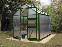 The UK manufactured green Halls Cotswold Burford 8x6 Greenhouse with shatterproof 6mm polycarbonate glazing, is safe for family gardens and gives great insulation all year round to your plants.
