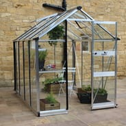 The UK manufactured Halls Cotswold Burford 6x10 Greenhouse with toughened glazing with it`s 5ft 2" high eaves is a very spacious greenhouse ideal for all sorts of growing.
