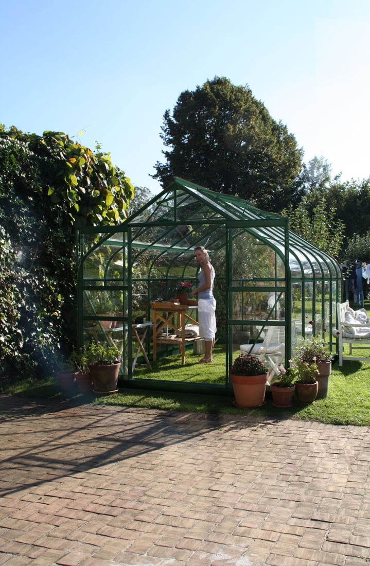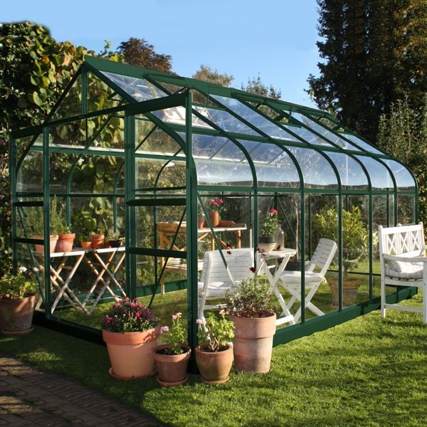 The Halls Supreme green 8ft x 12ft Greenhouse with toughened safety glass will get you growing in even the smallest of yards or gardens and offers all of the features you would expect from a Halls greenhouse. The attractive curved eaves on the Supreme are made from tough UV protected acrylic and give the greenhouse a unique look. Halls toughened safety glass is a long single sheet that goes from base to eaves and a long single pane for each roof section. Toughened glass is recommended for gardens where children or pets are around as it won`t break into dangerous shards like standard greenhouse glass but into small pebbles like a car windscreen. Toughened safety glass is also far better if you live in a windy spot as it`s heavy meaning it won`t blow out in high winds and makes your greenhouse generally more stable as a result.