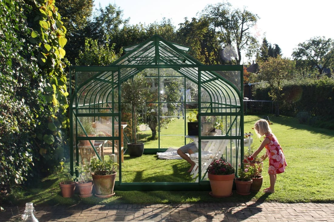 The Halls Supreme green 8ft x 14ft Greenhouse with toughened safety glass will get you growing in even the smallest of yards or gardens and offers all of the features you would expect from a Halls greenhouse. The attractive curved eaves on the Supreme are made from tough UV protected acrylic and give the greenhouse a unique look. Halls toughened safety glass is a long single sheet that goes from base to eaves and a long single pane for each roof section. Toughened glass is recommended for gardens where children or pets are around as it won`t break into dangerous shards like standard greenhouse glass but into small pebbles like a car windscreen. Toughened safety glass is also far better if you live in a windy spot as it`s heavy meaning it won`t blow out in high winds and makes your greenhouse generally more stable as a result.