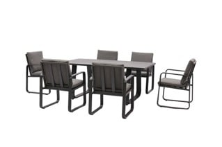 The Babingley 6 Seat Outdoor Dining Set is made from Powder Coated rust-resistant aluminium to create long-lasting and comfortable Garden Furniture that can be left outside all year round. The comfortable deep-filled cushions are made from a combination of Polyester and Acrylic.