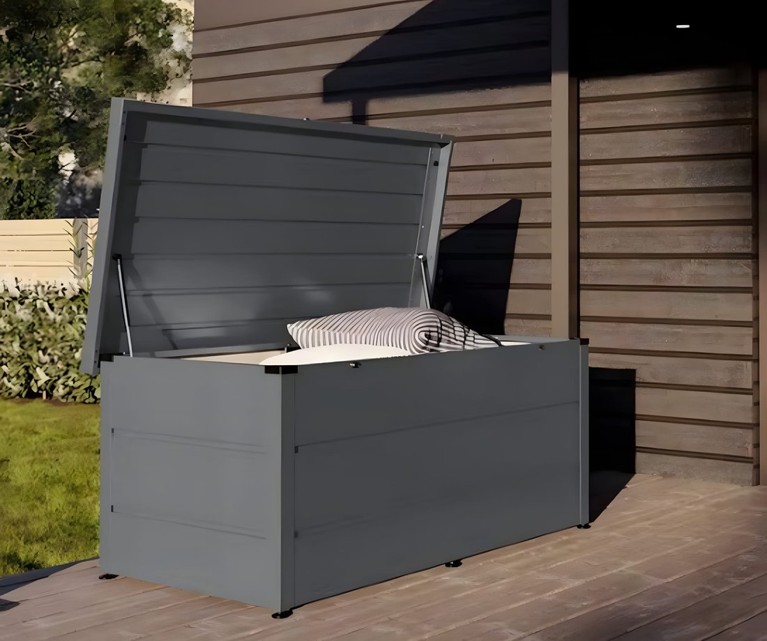 With a robust, two-point locking system and an integrated cylinder lock, your belongings remain safe. Integrated dampers ensure smooth opening and closing, while height-adjustable feet allow for customization. Available in a choice of Grey Aluminium and Anthracite Grey Powder Coated Galvanised Sheet Steel, the Metal Hormann Juno Garden Storage Box is a durable, eco-friendly, and elegant addition to any outdoor space.