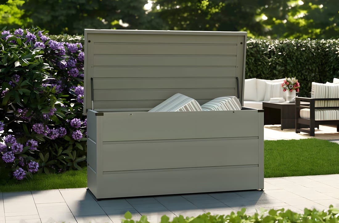 The Hormann Juno 5x3 Metal Storage Box is perfect for those looking for a practical and stylish storage solution for your garden or balcony. The Hörmann Juno Metal Cushion Storage Box provides secure, weatherproof storage for cushions, toys, tools, and patio items. Made from galvanized sheet steel, it is UV-resistant, rainwater-proof, and low-maintenance, keeping your outdoor space neat and organized.