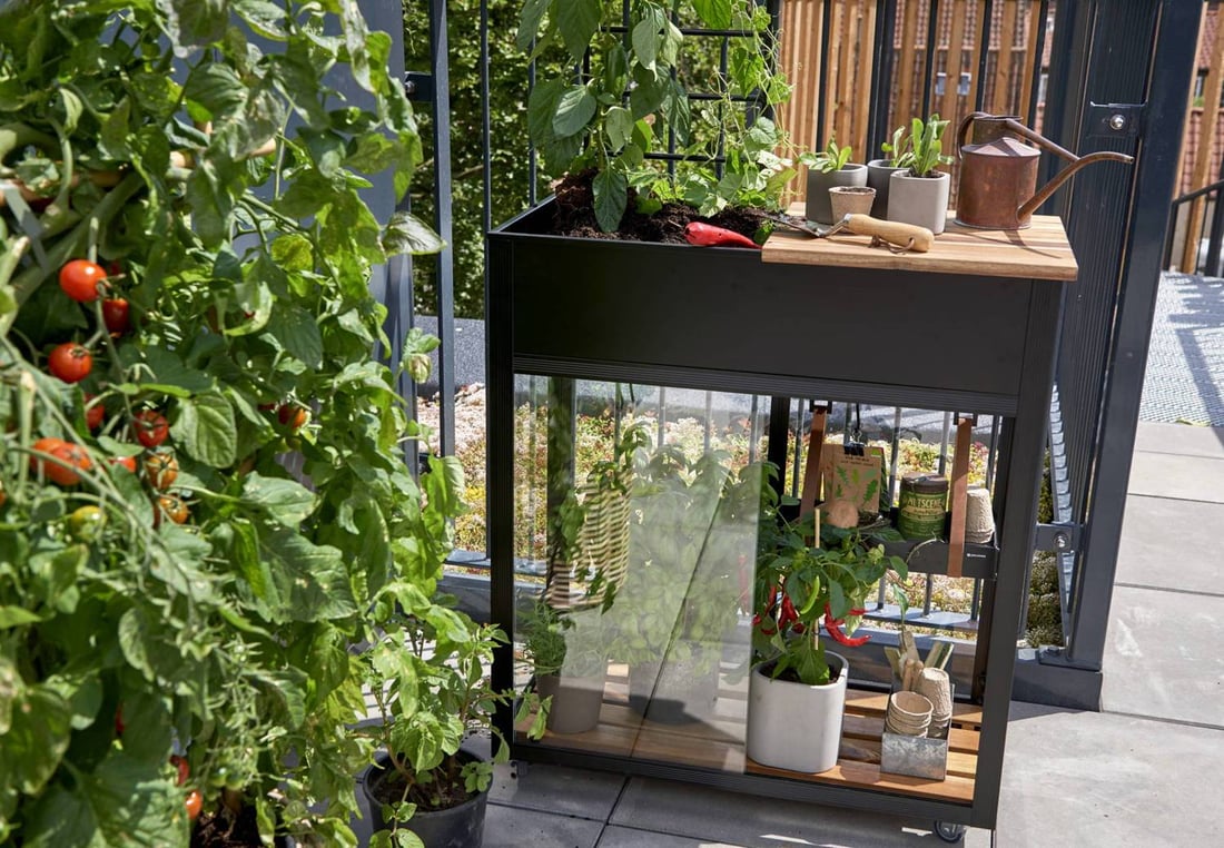 The NEW Juliana Vertical Urban Greenhouse combines a traditional potting bench with a glass growhouse, making it ldeal for both greenhouses and places with limited space such as an apartment balcony or Urban Garden Courtyard. The castors make it extremely manouverable.