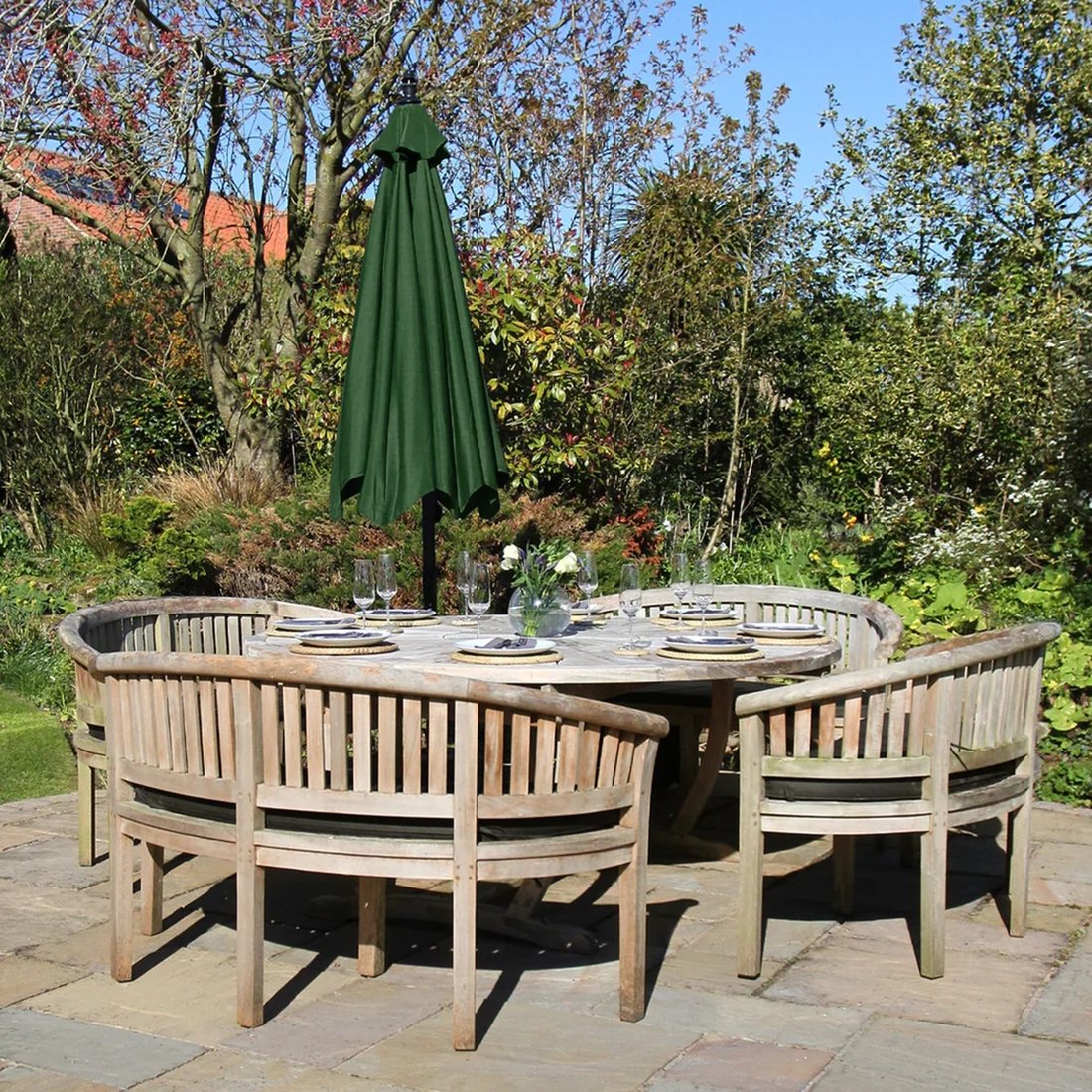 Just fill the sectional Fan Shaped Parasol Base with sand or water and you are good to go!