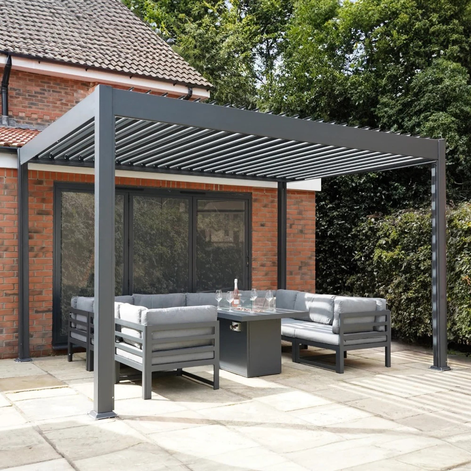 The Lichfield 3m x 3m Garden Pergola will transform your outdoor space into a sanctuary of relaxation and style. Featuring adjustable louvers, allowing you full control over sunlight and shade to customize your outdoor environment. Crafted from high-grade aluminium with a sleek powder-coated grey finish, this pergola combines exceptional strength and resilience against the elements with modern aesthetic appeal. Its sophisticated design makes it a captivating focal point for entertaining guests or unwinding in the open air, seamlessly enhancing any garden, patio, or backyard.