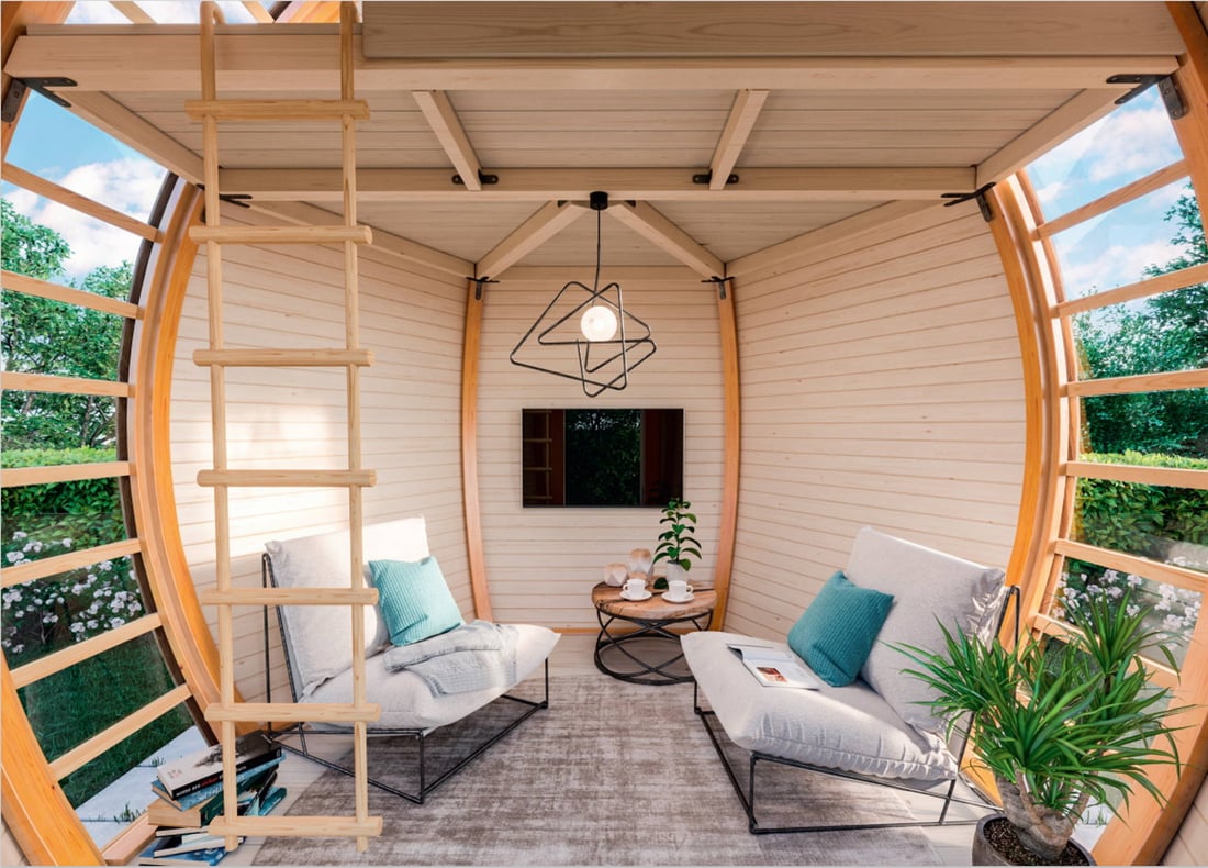 The Lichfield Crown Elegant Wooden Garden Room is flanked on both sides by Tempered windows that allow plenty of light in but also eliminate excess glare making it ideal as a garden office or for prolonged periods of relaxing with friends.