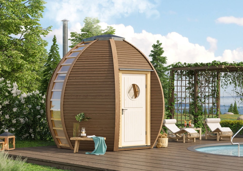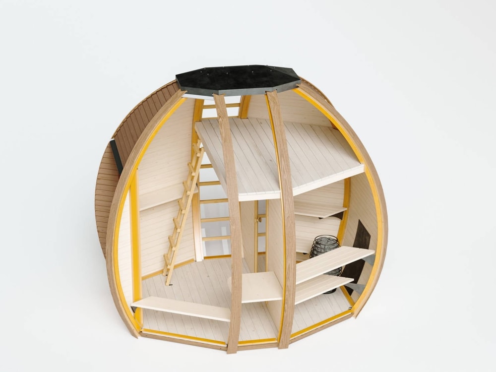 The Crown Elegant Wooden Sauna Pod is constructed using a Glue Laminated timber frame made from a combination of Siberian Birch and Natural Pine. The 28mm thick floor is built to take the weight of many a social gathering and all of this is backed up by a 7 Year Warranty.