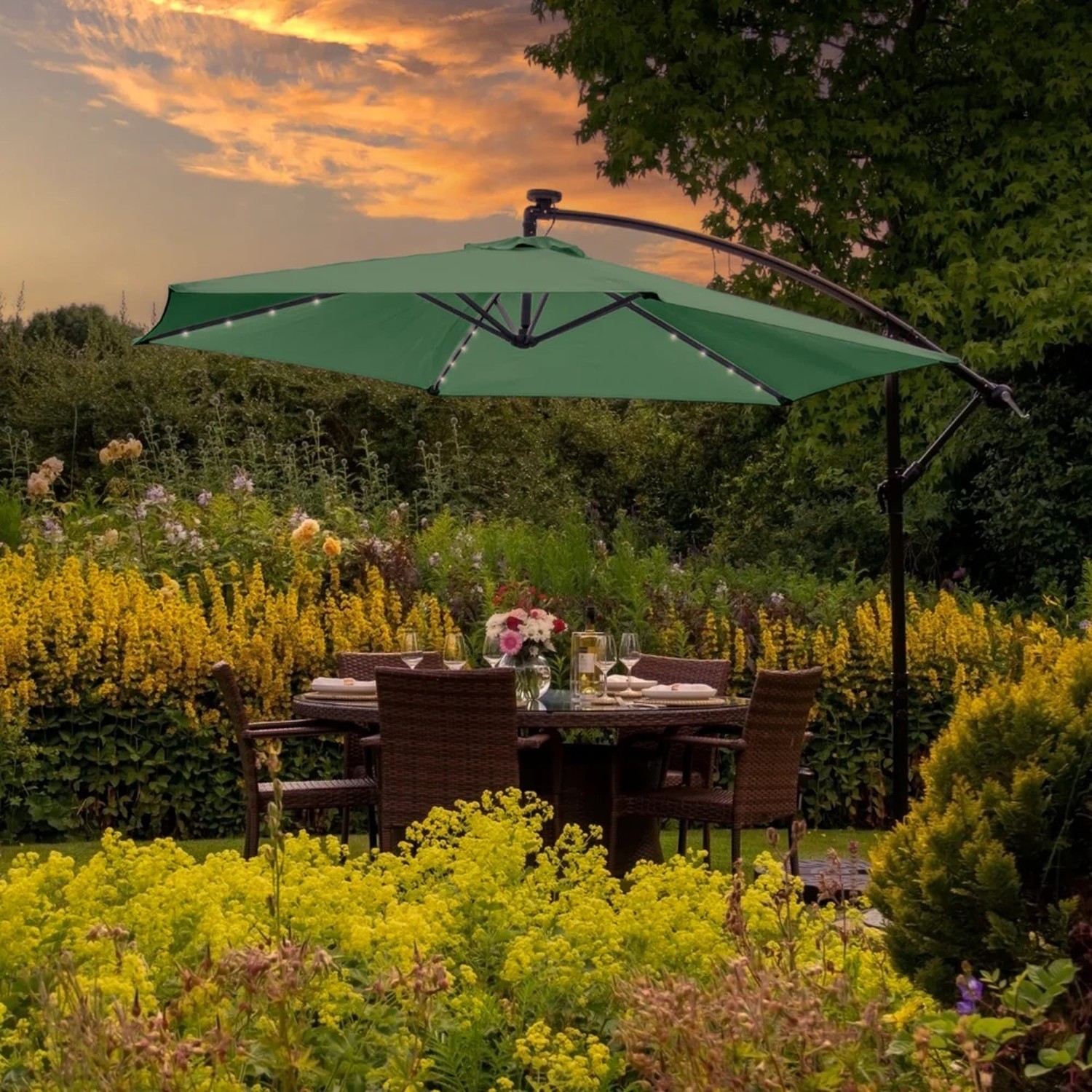 Lichfield Green 3m Cantilever Parasol with LEDs