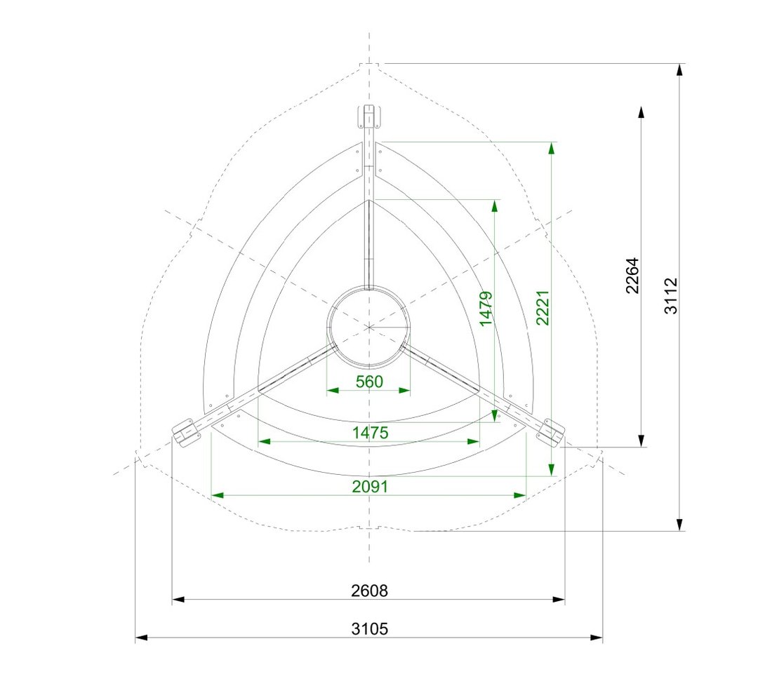 2091mm (6′ 10″) x 2012mm (6′ 7″) (aperture)