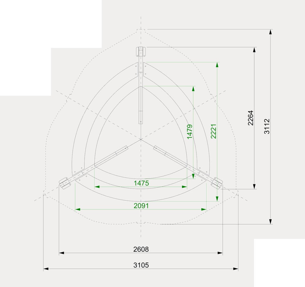 2608mm (8′ 6″) x 2264mm (7′ 5″)mm
